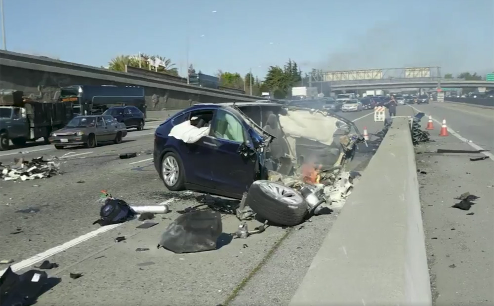 テスラmodel X 車体前半が無くなるほど激しく破損 炎上する大事故 運転手死亡 Autopilot使用は不明