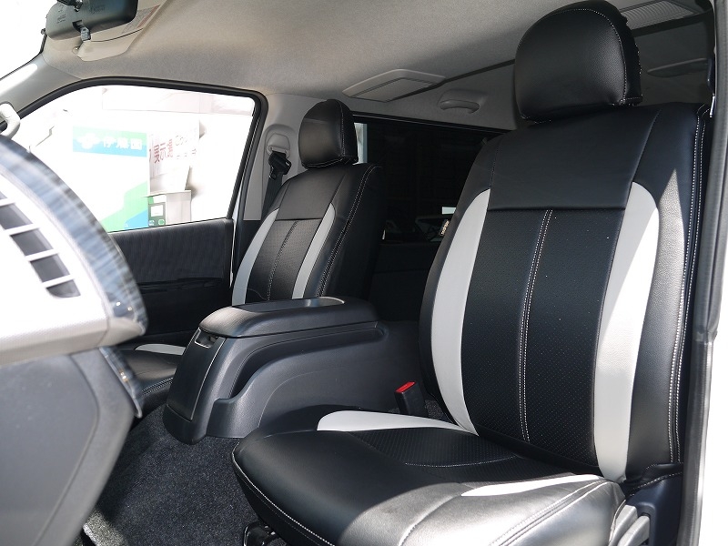 Amazon 200系 ハイエース スーパーgl専用 フロント セカンド用 シートカバー ブラック ホワイト 1型 2型 3型 4型 5型 6型 対応 シートカバー 車 バイク