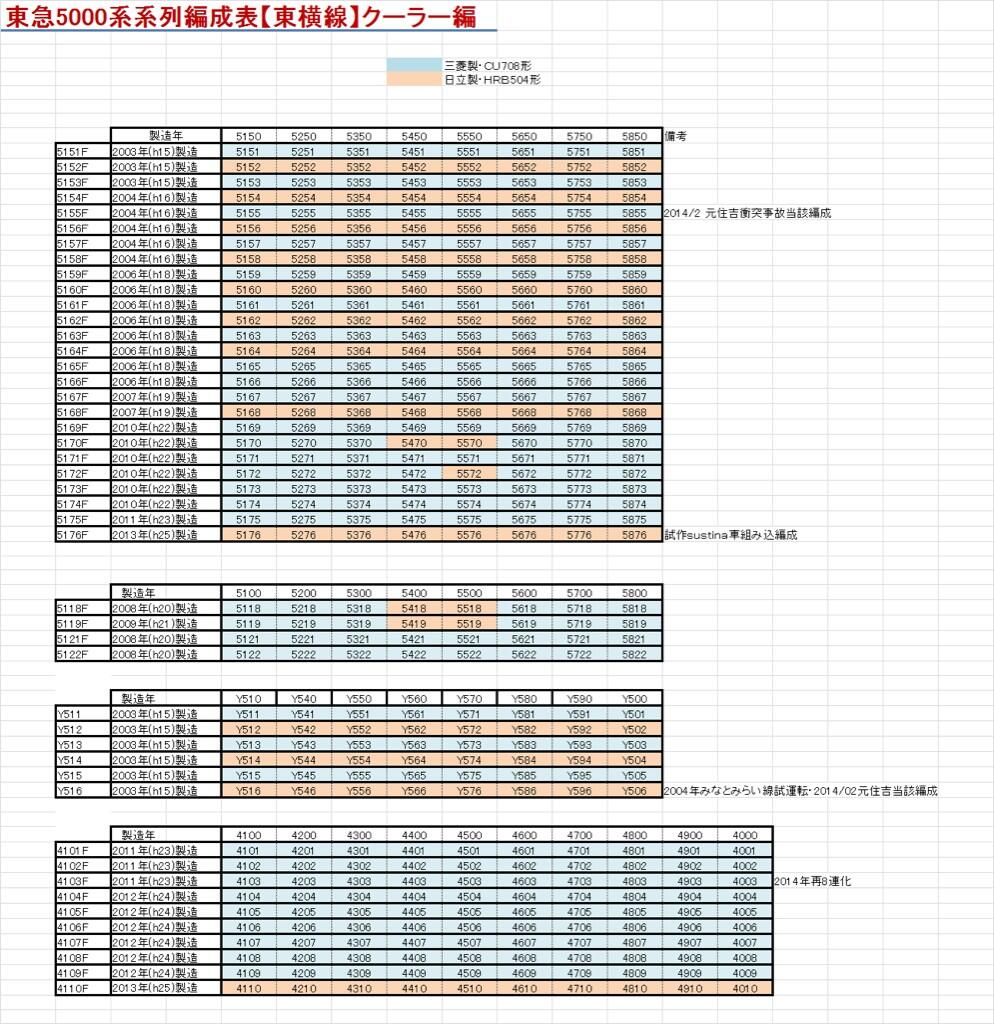 きうまる On Twitter 東横線所属の東急5000系 5050系 4000番台 Y500系の搭載クーラー表が出来ました この前挙げた編成表と一緒に活用してみてネ また間違えてたら教え Ry Http T Co Mleakmhazc